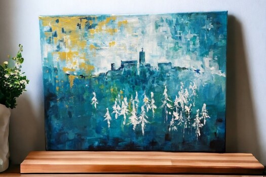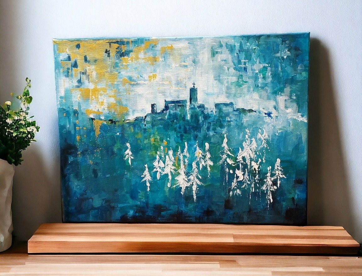 Zum Motiv: Die "Wartburg abstrakt Türkis und Gold" ist das mit Abstand beliebteste Motiv seit dem Start meiner Mal-Events und darf in keiner Saison fehlen. Es wird abstrakt gemalt und gespachtelt. Für die Umrisse der Burg biete ich eine Schablone an, die verwendet werden kann, aber nicht muss.