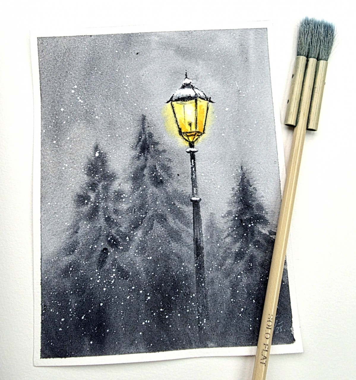 Am Freitag, 30. Januar 2026 malen wir eine Laterne im Schnee. Die Haupttechnik ist Nass in Nass.